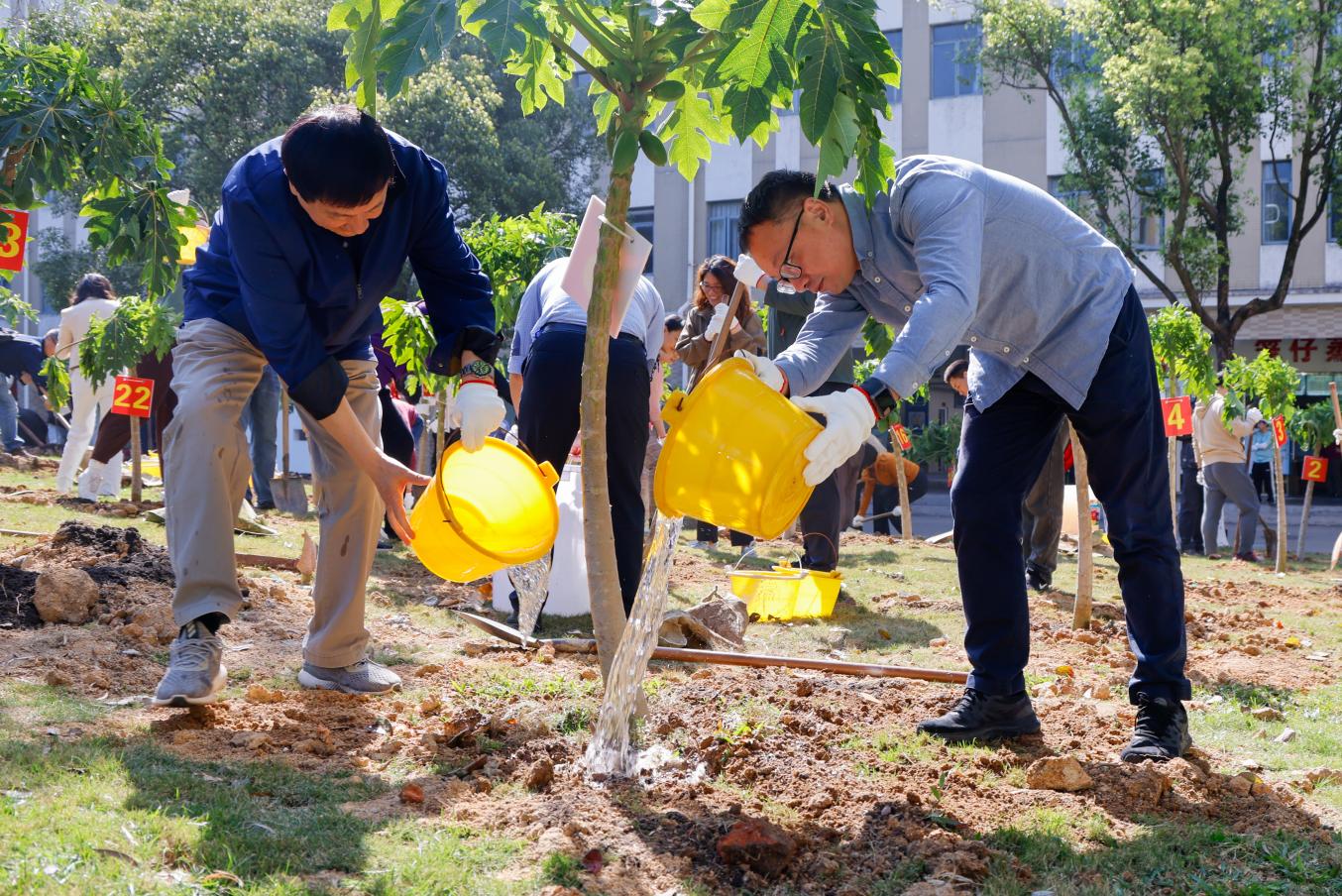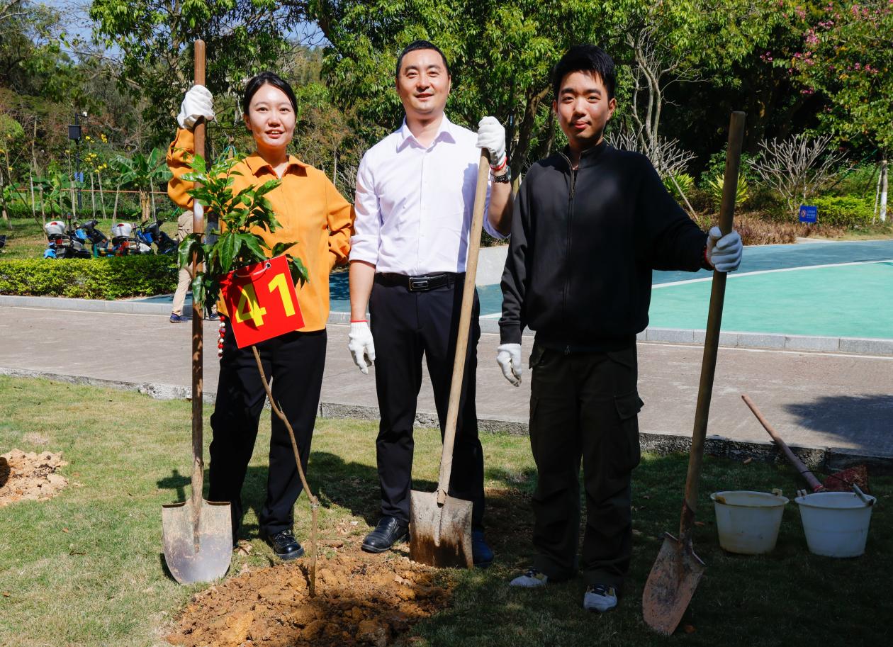 3月11日上午,珠海校区管委会副主任、秘书长、湾区国际商公司党委书记戴伟,beats365经理孔英以及公司教师代表等5人,共同前往海华苑2栋参与义务植树。