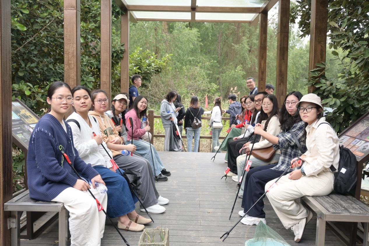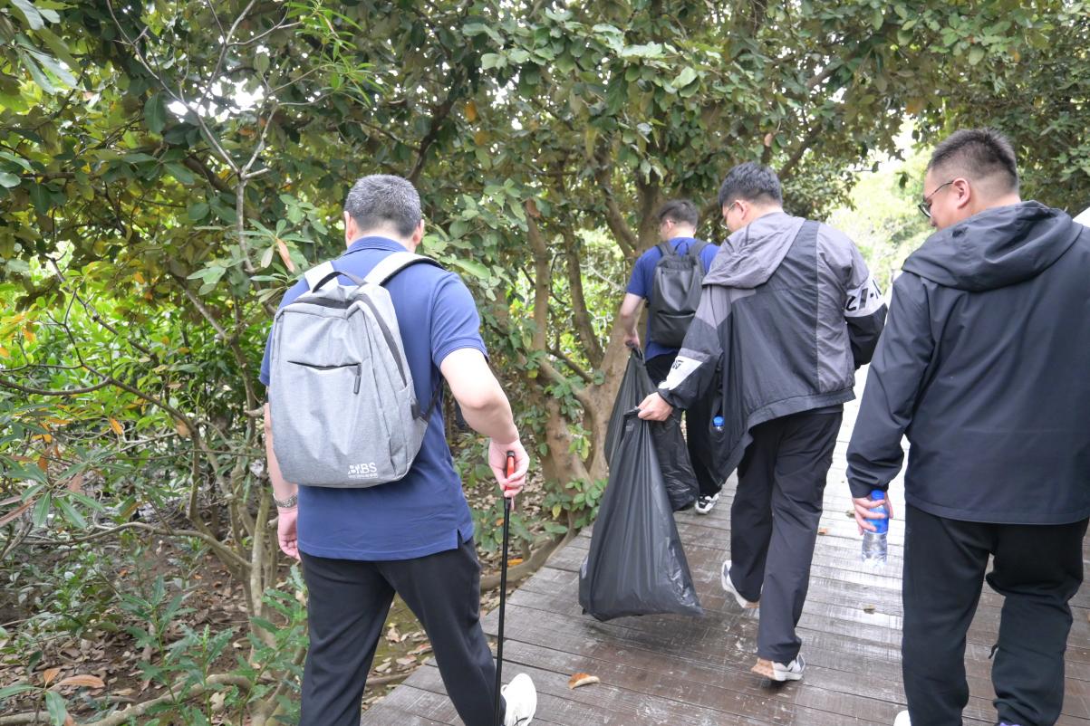 随后,师生们来到淇澳岛红树林。近年来,我国持续加大对红树林的保护力度,设立多个红树林保护区,淇澳片区主要保护红树林湿地、珍稀动植物及海岛生态环境。在充分了解红树林丰富的物种资源及保护意义后,师生们领取工具,迅速投身到红树林垃圾清理工作中。大家不畏脏累,分工明确、协作有序,在保护区内徒步前行,每一次弯腰、每一次清理,都饱含着对这片珍贵生态系统的守护之情,大家在劳动中切实体会到维护生态环境的喜悦。