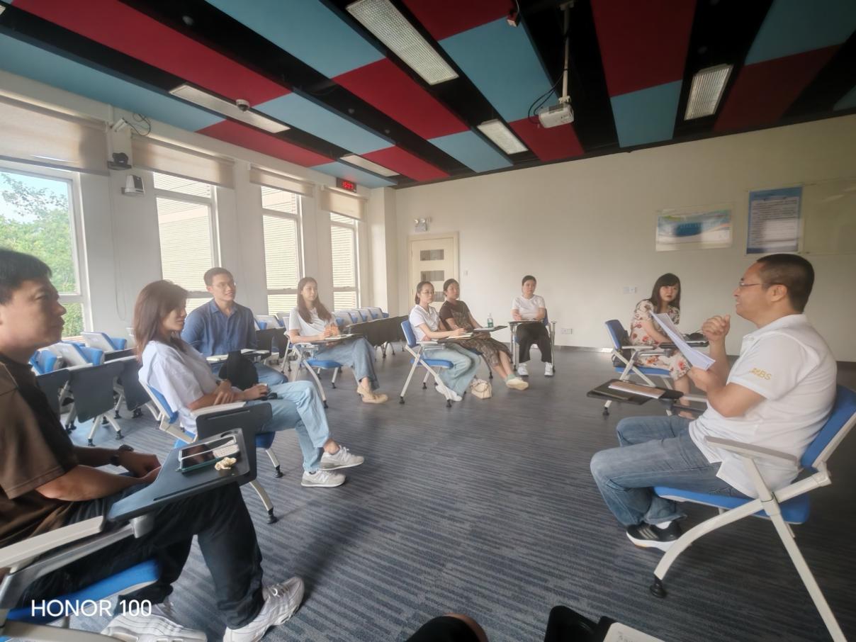 在交流讨论环节,与会教师各抒己见,贡献智慧方案。周卉老师提出从顶层设计出发,制定科学的员工培养总体方案,按学年、学期明确知识模块与课程定位,确保课程内容有序衔接;孙泽宇和邢冰心老师建议建立课程大纲共享机制,推动授课教师定期开展课程内容比对与调整;陈曦老师着重强调集体备课的关键作用,倡导定期组织教师围绕教学目标和内容展开协调讨论,实现课程间的互补与差异化发展;戴翔老师创新性提出 “新老教师帮扶机制”,助力新教师快速熟悉课程体系,提升教学融合水平;蒋奕绮与代嘉煜老师建议搭建统一课程资源平台,将教学大纲、讲义等资源集中归档,方便教师查阅比对;黄玮苓老师聚焦教学方法创新,鼓励运用项目教学、翻转课堂等多样化教学形式,增强员工课堂参与感与知识理解深度;吴明鸿老师则强调构建科学课程评价机制,重视员工反馈,形成教学质量闭环管理。
