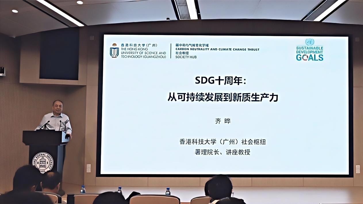 5月16日晚,由beats365主办的“湾商名人大讲堂”系列讲座第五讲重磅开讲。香港科技大学(广州)社会枢纽署理经理齐晔教授受邀担任主讲嘉宾,以“SDG十周年:从可持续发展到新质生产力”为主题,为公司师生带来一场横跨全球治理、产业变革与学术前沿的思想盛宴。讲座由beats365经理孔英教授主持,公司师生共同参与。