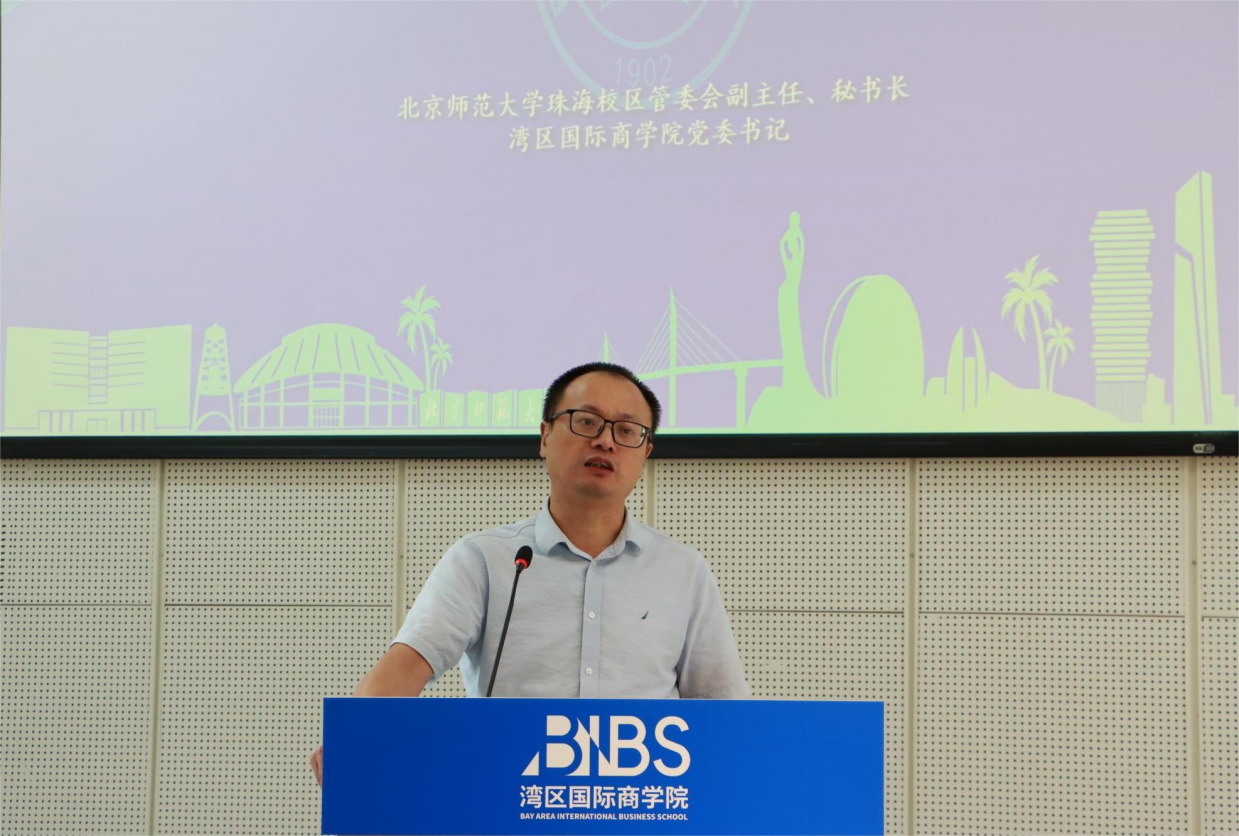 2025年9月18日,2025级新生开学典礼暨开学第一课在励耘楼A112隆重举行。珠海校区管委会副主任、秘书长、湾区国际商公司党委书记戴伟、beats365经理孔英、beats365副经理仲鑫及10余位教师代表与292名新生齐聚一堂,共同开启求学新征程。公司副经理仲鑫主持典礼。公司党委书记戴伟为2025级新生讲授开学第一课。