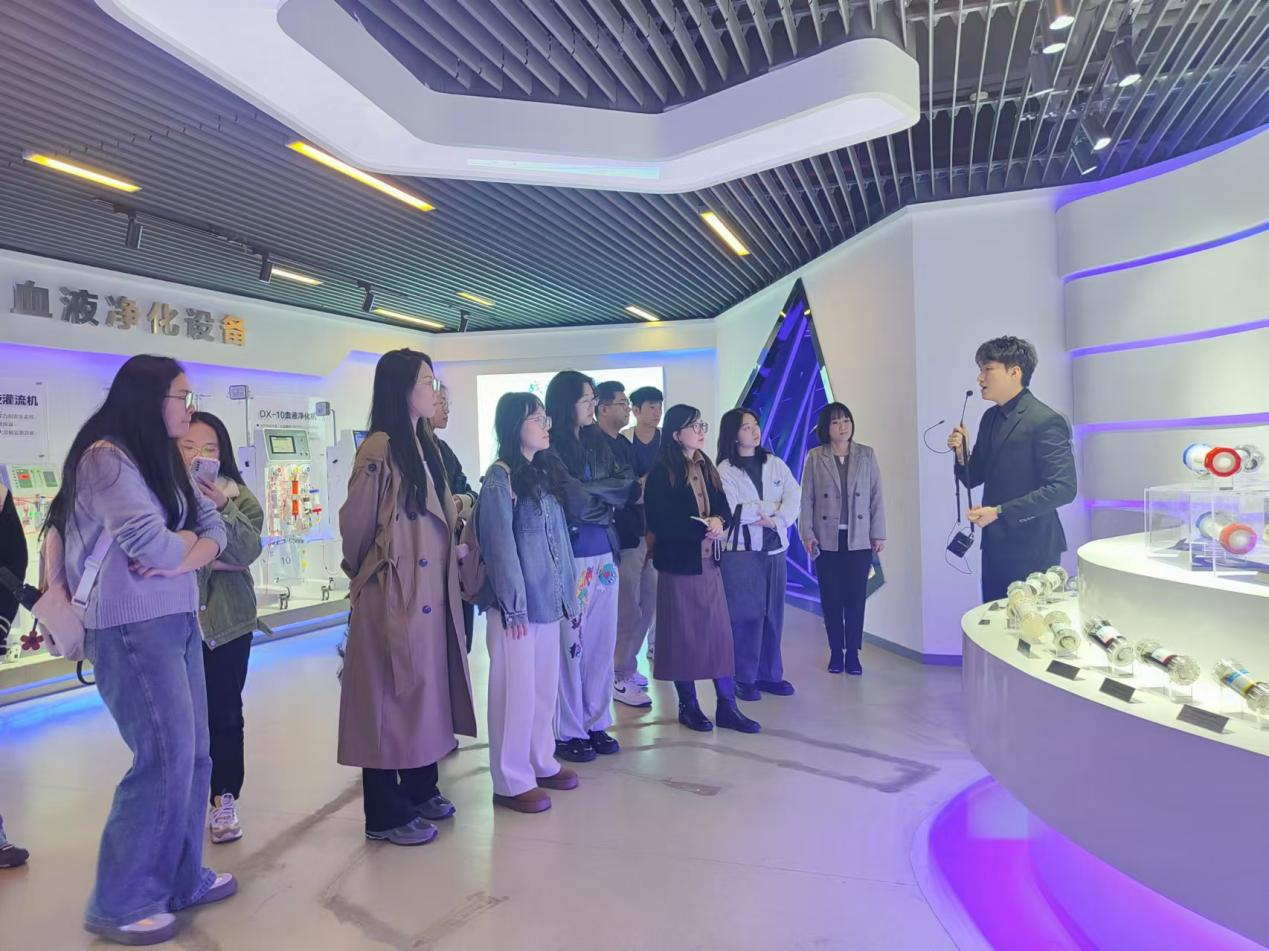 活动伊始,健帆集团人力资源部的工作人员为来访师生悉心讲解了企业发展脉络。健帆集团自主研发并推出的的血液灌流器系列产品和树脂全血灌流、人工肝、组合型人工肾和吸附型体外循环等多项临床医疗技术,已经进入中国30多个省市6000多家大中型医院,并远销德国、英国、意大利等90多个国家。