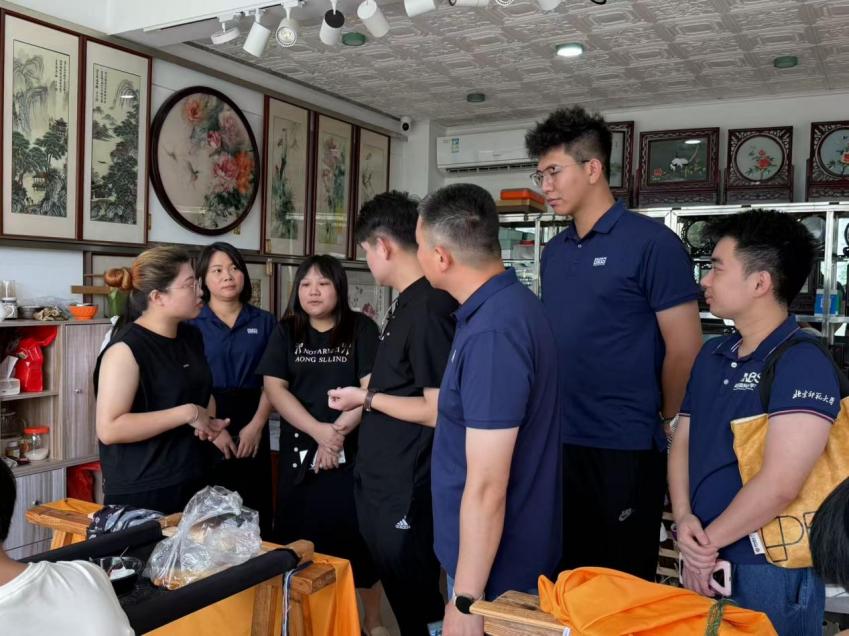 首日,研学团参访了潮州陶瓷企业与潮绣研究院。通过实地观摩与互动体验,同学们切身感受到陶土在匠人手中的温度与绣线之间所承载的活态文化传承。陶瓷的塑造与潮绣的织就,不仅是技艺的展示,更揭示了商道精神根植于匠人匠心这一深刻主题。