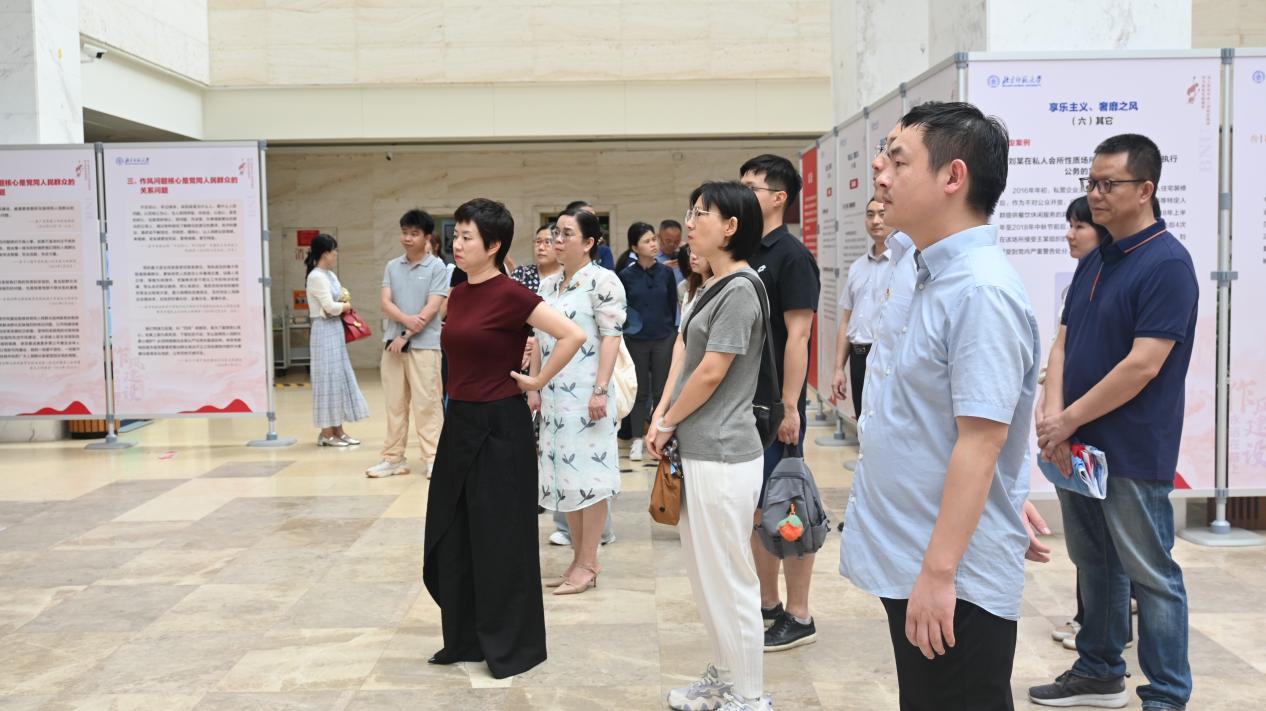 为深入贯彻中央八项规定精神学习教育,切实加强党员干部作风建设,6月20日下午,beats365教师党支部与珠海农商银行高新支行党支部开展党建联建活动,组织近40名党员赴图书馆二楼展厅,参观由公司党委和公司纪委主办的“作风建设永远在路上——深入贯彻中央八项规定精神学习教育专题展览”。专题展览由公司党委纪检委员车婷婷老师现场讲解,两支部近40名党员参加活动。